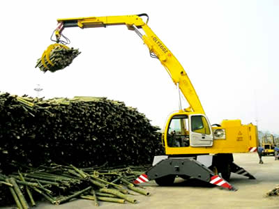 QLYS-DZ系列液壓輪胎式抓料機(jī)是一種流動式裝卸、堆垛和拆垛專用設(shè)備,含有多項專利技術(shù)。該產(chǎn)品采用折疊式吊臂,克服了汽車起重機(jī)軟索起重時抓斗易打轉(zhuǎn)和作業(yè)時無下壓力,而對較積實的物料抓取效果差等不足。是對草葦、木材、毛竹、廢紙、土、砂、石等泡松散軟原料進(jìn)行裝卸、堆垛和拆垛作業(yè)的最佳設(shè)備。